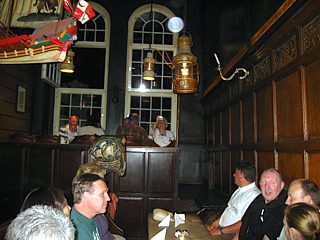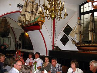 Gegen 22:00 Uhr kamen die Teilnehmer mit „qualmenden Socken“ bei der Schiffergesellschaft an. In dem urigen Lokal genoss das Grüppchen inmitten von unzähligen historischen Schiffsmodellen das Dessert.