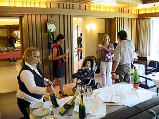 Die individuelle Anreise der Teilnehmer erfolgte bis 18:30 Uhr. Doch aufgrund der vielen Baustellen auf der A5 konnten viele der Clubmitglieder staubedingt nicht pünktlich anreisen. Und so fand der Sektempfang um 19:00 Uhr in einem überschaubaren Rahmen statt.