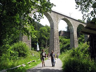 Im Tal angekommen erwartete die Clubmitglieder noch ein imposanter Anblick. Das Ravenna-Viadukt der Höllentalbahn. Die Wartezeit auf den Bus vertrieb man sich bei einer Erfrischung im Hofgut Sternen.