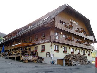 Um 18:00 Uhr war dann Abfahrt mit den Autos zum Abendessen. Die gemeinsame kurze Fahrt führte zu dem auf 1030 m Höhe wunderbar gelegenen Gasthaus Engel in Hinterzarten. Hier wurde nun das Abendessen á la carte genossen.