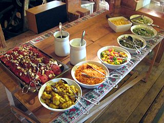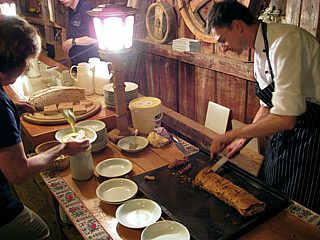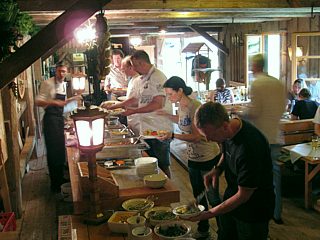 In rustikaler Atmosphäre wartete man gespannt auf die Eröffnung des Buffets.