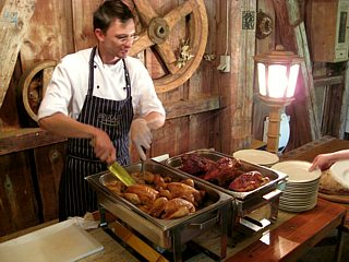 Das Buffet ließ keine Wünsche offen und reichte von verschiedenen Salaten, über Grillhähnchen und Spanferkel mit diversen Beilagen und Soßen bis hin zum Nachtisch, einem warmen Apfelstrudel mit Vanillesoße. Hier konnte nach Herzenslust geschlemmt werden.