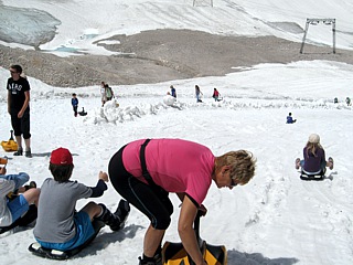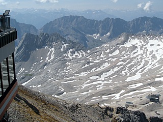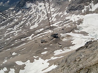 Nach knapp zwei Stunden Aufenthalt war es auch schon wieder Zeit an den Abstieg zudenken. Und so fuhr man mit der Gletscherseilbahn am Schneefernerhaus vorbei zum Zugspitzplatt hinunter. Hier konnten noch die letzten Reste Schnee genoßen werden.