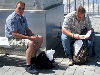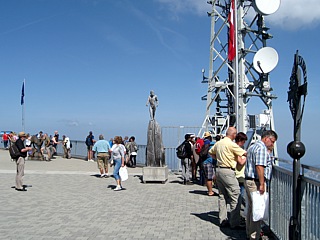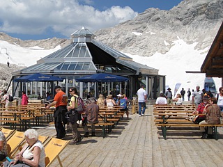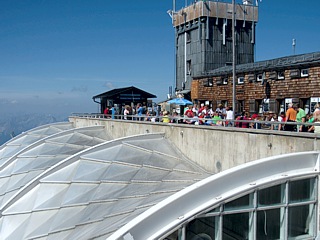Auf der Zugspitze angekommen konnten die Clubmitglieder individuell den deutschen und österreichischen Teil in Augenschein nehmen. Bei angenehmen Temperaturen bot sich ein grandioses Panorama und eine tolle Fernsicht. So konnte man in der herrlichen Sonne das vom Hotel vorbereitete Lunchpaket in Ruhe genießen. Alternativ gab es natürlich auch Deutschlands "höchste" Bratwurst.