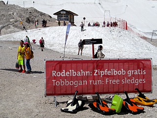 Mit der Zugspitz-Zahnradbahn fuhr man dann vom Zugspitzplatt hinunter ins Tal am Eibsee vorbei nach Grainau. Bis zur Abfahrt der Bahn blieb noch ein bisschen Zeit zum Verweilen. Wer wollte konnte auch kostenlos mit den "Zipfelbobs" fahren.