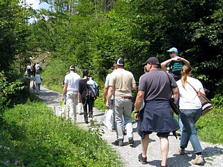 Gegen 17:00 Uhr folgte dann der zweite Programmpunkt des Tages, die Besichtigung der Partnach-Klamm. Gemeinsam fuhr man zum Olympiastadion nach Garmisch-Partenkirchen. Hier wurden die Fahrzeuge geparkt und ein ca. 1.5 km langer Fußmarsch führte an den Skisprungschanzen vorbei zur Partnach-Klamm.