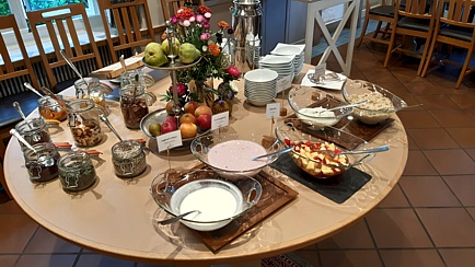 Auch im Forsthaus Heiligenberg bot das Frühstücksbuffet alles was man sich nur wünschen konnte. Schon ab 7:00 Uhr durfte hier in einer angenehmen Umgebung das Frühstück genossen werden. Rührei, Spiegelei und Omelette konnten beim sehr freundlichen Servicepersonal bestellt werden. Somit verwunderte es auch nicht, das alle Clubmitglieder ausgiebig und in aller Ruhe frühstückten.