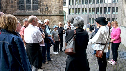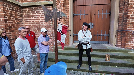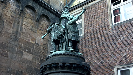 Gegen 17:30 Uhr startete man nun mit dem Abendprogramm, das Highlight dieses Events. Ein Rundgang mit dem Nachtwächter durch das alte Bremen mit anschließendem Dinner im Bremer Ratskeller. Die 45-minütige Fahrt auf der B6 nach Bremen war nichts spektakuläres, sondern eher Mittel zum Zweck. Geparkt wurde direkt im Zentrum von Bremen, im Parkhaus am Dom. Am Rathausplatz bei den Bremer Stadtmusikanten wurden wir bereits von Walter Brandt, dem Nachtwächter, erwartet. Nach kurzer Vorstellung seinerseits und einer Erläuterung der Aufgaben eines Nachtwächters begann der Rundgang. Erste Stationen waren der Dom, die "richtigen" Stadtmusikanten und die Kirche St. Johann.
