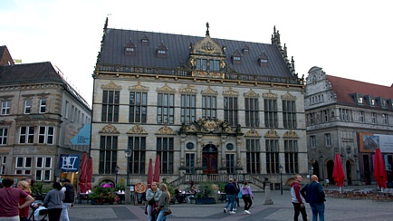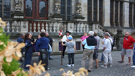 Zum Ende des Rundganges führte der Weg auf den Marktplatz. Hier gab es dann ausführliche Informationen zum Haus Schütting und dem Bremer Roland.
