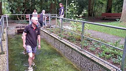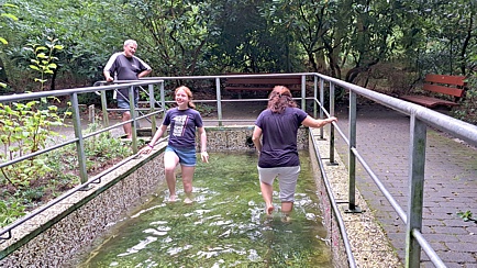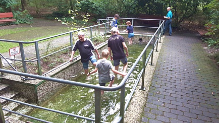 Und so entschloss sich spontan ein Teil der Clubmitglieder für einen kurzen Rundgang durch den angrenzenden Wald mit abschließenden Kneippgängen im hoteleigenen Kneippbecken. Das sehr kühle Wasser des Kneippbeckens, gespeist durch die natürliche Quelle des Flusses Eyter - welche auf den Hotelgelände entspringt, vertrieb hier die letzte verbleibende Müdigkeit.