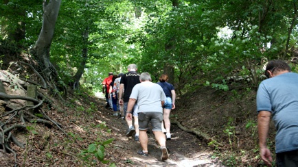 Eigentlich wollte man mit den eigenen Fahrzeugen zur Schmalspur-Eisenbahn nach Bruchhausen-Vilsen gelangen, welches ja die nahegelegene Ortschaft zum Hotel ist. Ein Clubmitglied entschied sich jedoch für einen Fußmarsch, da der Bahnhof in Bruchhausen-Vilsen nur 3.1 km entfernt ist, und das zu Fuß ja in ca. 40 Minuten zu bewältigen sei. Als dies unter den Teilnehmern die Runde machte, entschieden sich immer mehr Clubmitglieder sich diesem Vorhaben anzuschließen, bis letztendlich der komplette Teilnehmerkreis sich zu Fuß auf den Weg nach Bruchhausen-Vilsen machte.