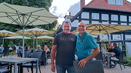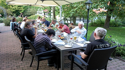Und wie bei jedem Event kam die Zeit für das letzte Abendessen wieder mal viel zu schnell. Gegen 19:00 Uhr traf man sich bei herrlichem Sommerwetter auf der Terrasse des Hotelrestaurants. Hier war bereits die Tafel für den Lotus-Club-Deutschland wunderschön eingedeckt. Mit einem Aperitif stieß man gemeinsam auf den Abschluss dieses tollen Events an. Im Anschluss bedankte sich der Vorstand bei Iris und Günther für die Planung und Organisation. Und somit konnte nun das Menü beginnen. Seinen Hauptgang durfte jeder Teilnehmer am Morgen beim Frühstück aus dem Menüvorschlag wählen.