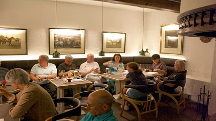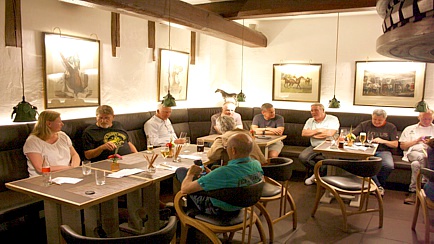 Zu späterer Stunde und glücklicherweise nach dem Essen kam der angekündigte Wetterwechsel. Als stärkerer Wind aufkam und es zu regnen begann, wechselte man nach drinnen ins Kaminzimmer. Und so saß man noch lange in gemütlicher Runde zusammen und genoss den letzten Abend eines sehr schönen Events.