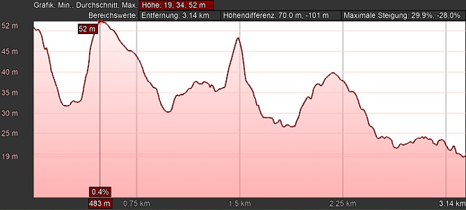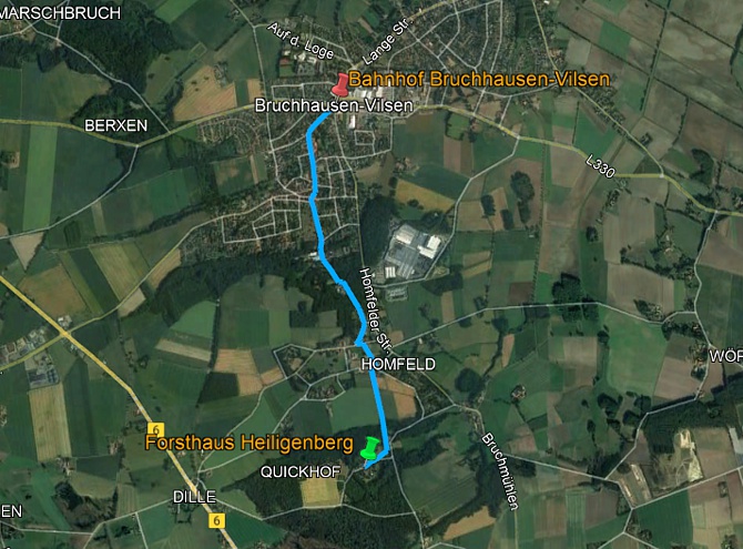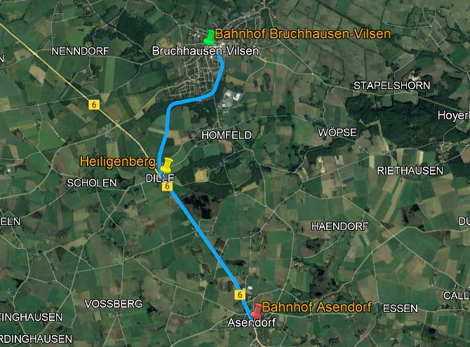 Vom Hotel "Forsthaus Heiligenberg" aus führte die Route vorbei an der Klostermühle Heiligenberg, über Felder, durch den Kurpark und den Ortskern zum alten Bahnhof von Bruchhausen-Vilsen.