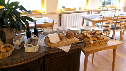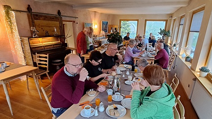 Ab 08:00 Uhr konnte im Raum "Kirchblick" in angenehmen Ambiente gefrühstückt werden. Das Buffet bot alles war das Frühstücksherz begehrte. Auf Wunsch wurden Rührei, Spiegelei und Omelette frisch zubereitet.