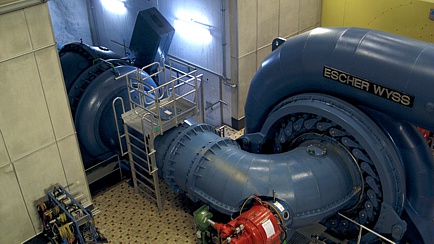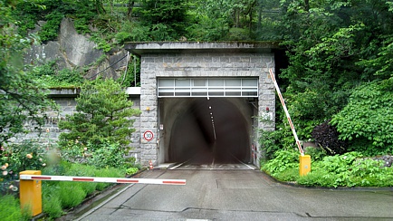 Durch einen kleinen Verbindungstunnel gelangte man in die Schieberkaverne. Hier befinden sich die Zufluss- und Sicherheitsventile. Letztere würden bei einem Rohrbruch innerhalb von zehntel Sekunden schließen um eine Überflutung des Kraftwerks zu verhindern.