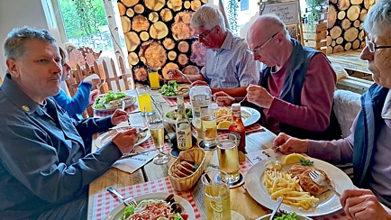 Es ging zum Mittagessen nach Niederhof in die "Stammbeiz". Die Anfahrt war, der Ausgangssituation entsprechend, eher kurz. So mussten die Hungrigen nicht allzu lange warten. Wobei etwas abseits geparkt werden musste und doch noch ein kleiner Fußmarsch notwendig war. Welcher vereinzelte Clubmitglieder scheinbar an ihre Grenzen brachte.