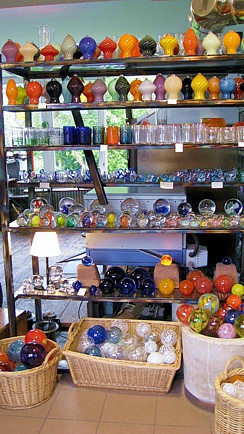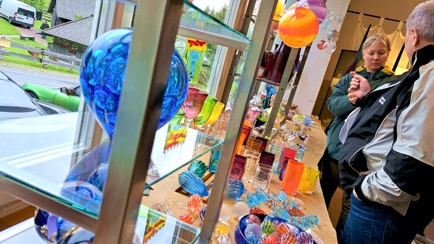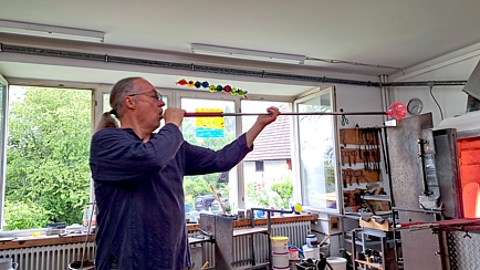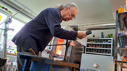 Dirk Bürklin ist Glasmacher und beherscht das alte Handwerk der Heißglaskunst. Wir durften zuschauen wie mit der Glaspfeife 1200°C heißes, flüssiges Glas aus dem Glasofen entnommen wurde. Dies wurde geblasen, gezogen, mit farbigen Glasplittern versehen und wieder erhitzt bis der Glasmacher mit der endgültigen Form zufrieden war. So entstand vor unseren Augen ein Schwan und eine dekorative Kugel. Wer dies selbst einmal ausprobieren möchte, hat bei Herrn Bürklin die Möglichkeit einen Heißglaskurs zu buchen.