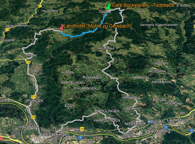 Denn beim letzten Südschwarzwald - Event wurde die Schwarzwälder Kirschtorte sträflichst vernachlässigt. Dies wurde nun nachgeholt. So führte die vierte Etappe kurvenreich und pünktlich zum Nachmittagscafé nach Todtmoos ins Café Bockstaller.