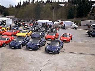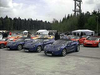 Bei herrlichstem Wetter stand ab 12 Uhr das Fahrerlager 3 dem Lotus Club Deutschland zur Verfügung. Weit mehr Fahrzeuge als erwartet folgtem dem Aufruf zum Treffen. Ca. 200 Lotussportwagen und rund 350 Enthusiasten kamen an den Ring. Bei Brezeln und Sekt, gestiftet vom Lotus Club Deutschland, konnten sie ihre Autos gegenseitig begutachten und so manches Fachgespräch führen. Auch einige Händler und Tuner standen den Fragenden Rede und Antwort. Der große Höhepunkt bildete zum Abschluß das freie Fahren auf dem Hockenheimring, an dem sich 40 Lotussportwagen beteiligten.