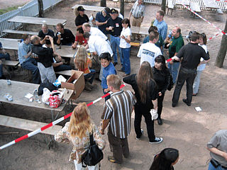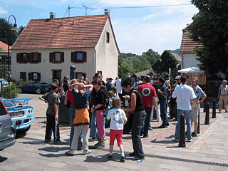 Nach der offiziellen Begrüßung und dem ersten gegenseitigen "Beschnuppern" mussten die jugendlichen Beifahrer zunächst ein Los mit einem Kennzeichen ziehen und sich danach auf die Suche nach dem Wagen mit genau diesem Nummernschild machen. Bevor es jedoch richtig los ging, hieß es : "Aufstellen zum Gruppenbild!"