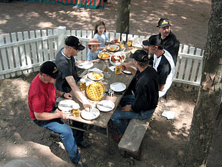 Nun stand das gemeinsame Grillen mit den Kids auf dem Programm. Dies wurde vom Beckenhof-Wirt Tom Memmer spendiert. Lediglich die Getränke der Erwachsenen gingen zu eigenen Lasten. Und so saß man bei Bratwürsten, Hähnchen, Schnitzeln und Pommes Frites in einer gemütlichen Runde beisammen.