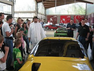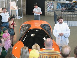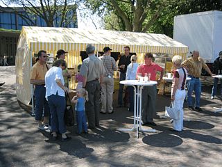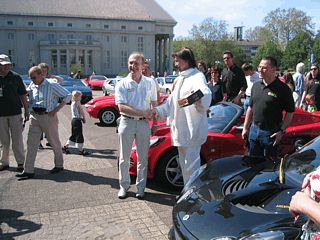 Im Anschluß an die Führung durch die Ausstellung traf man sich mit Herrn Colani auf dem Festplatz zu einem Gruppenfoto. Der Präsident des Lotus Clubs, Hugo Schneider, überreichte dem Designer zur Erinnerung zwei Lotus Elise - Modelle.