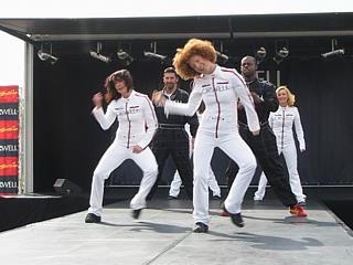 Wer genug vom Motorsport hatte, begab sich zur Showbühne, die zentral im Fahrerlager platziert war und verfolgte die Showeinlagen oder eine der Modeschauen. Auf der selben Bühne wurden übrigens auch die Siegerehrungen durchgeführt. Folge: Die Tänzer mussten aufpassen, dass sie nicht auf dem reichlich verspritzten Champagner ausrutschten. Wer einmal das Geschehen von oben verfolgen wollte, der stieg in die Gondel und ließ sich vom Autokran in schwindelerregende Höhen hieven. Belohnt wurde der Mut mit einer Aussicht über die gesamte Rennstrecke.