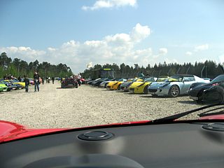 Gemeinsam mit den Lotus Clubs aus mehreren Europäischen Ländern bekamen wir ein eigenes Areal direkt an der Rennstrecke zur Verfügung gestellt. Neben den vielen historischen und aktuellen Lotus Fahrzeugen konnte man an der Parabolika den neu aufgebauten Club-Bus unserer Freunde vom Lotus-Club-Österreich bewundern.