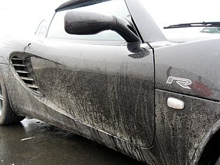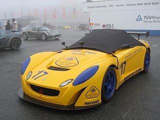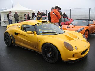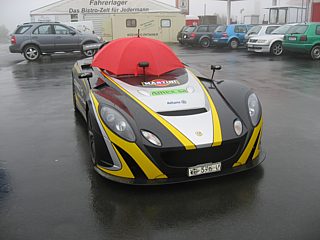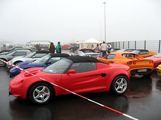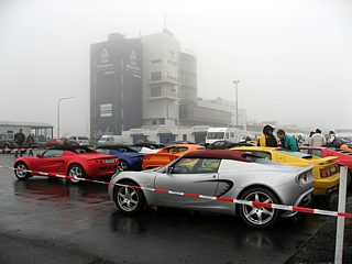 Bereits im Einladungsschreiben wurde darauf aufmerksam gemacht, dass die Umgebung des Nürburgrings zur Zeit einer Großbaustelle gleicht. Die Gebäude der Nürburgring-Erlebniswelt wurden abgerissen. Die angrenzenden Straßen sind durch den Baustellenverkehr erheblich verschmutzt. In Kombination mit dem bereits angesprochenen Dauerregen lachte das Herz eines jeden Offroad Fans. Zu dumm nur, dass Lotus keine SUVs im Programm hat. Man kann ohne Übertreibung sagen: So viele Lotusfahrzeuge, die mit einer dicken, grau-braunen Schlammschicht überzogen waren, hat die Welt noch nicht gesehen. Auf diesen Rekord hätten wir gern verzichtet, zumal viele Fahrzeuge gerade aus dem Winterschlaf gerissen wurden, wo sie sauber geputzt und poliert auf das Frühjahr warteten.