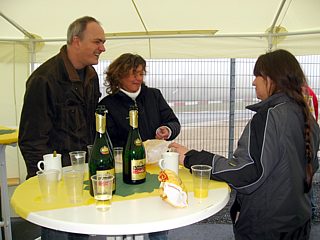 In unserem Clubzelt wurde jedem Besucher die obligatorische Mainzer Brezel und ein Glas Sekt gereicht. Natürlich gab es auch ein nicht alkoholisches Getränk. Zum Leidwesen von Günter Weniger aus Potsdam handelte es sich hierbei nicht um Milch von der Kuh, sondern um den allseits beliebten O-Saft. Auch diese Aufmerksamkeit war für alle Teilnehmer kostenlos.