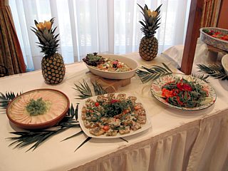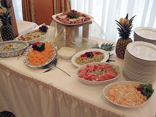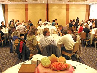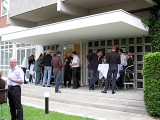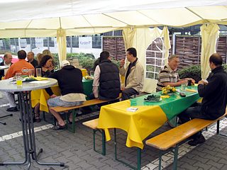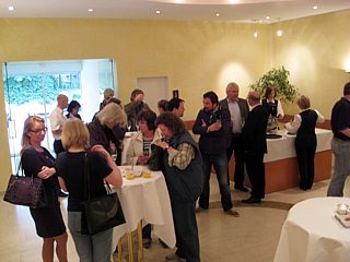 Diejenigen, die ein Zimmer gebucht hatten, bezogen nun Quartier. In den Räumlichkeiten des Hotels, sowie auf der Terrasse, verging die Zeit bis zur Eröffnung des Buffets bei angeregten Benzingesprächen wie im Flug.