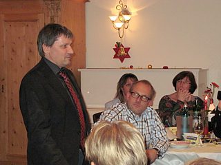 Der offizielle Teil der Weihnachtsfeier begann pünktlich um 19:00 Uhr mit der Begrüßung und dem Willkommensdrink. Das Weihnachtsbuffet wurde um 20:00 Uhr eröffnet. Nachdem alle gesättigt waren, hatte der 1. Vorsitzende, Ralf Bunn, die angenehme Pflicht, einige Clubmitglieder zu ehren. Denn es ist bei uns üblich, die 10-jährige Mitgliedschaft mit einer Urkunde und einer hochwertigen Anstecknadel zu würdigen. Der Kreis der „10-jährigen“ wächst zusehends. Ich halte diesen Umstand für beachtlich. Es ist als Barometer für das „gute Klima“ im Club zu werten und beweist eine stabile Kontinuität. Als nächstes gab Günther Losacker, 2. Vorsitzender und Event-Manager, einen kurzen Ausblick auf die Aktivitäten der kommenden Saison.