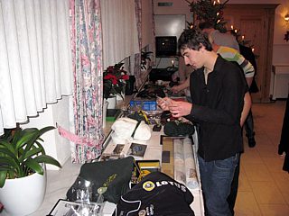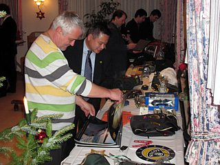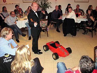 Aufgrund der großen Nachfrage seitens der Mitglieder, wurde erneut eine Versteigerung von Lotus-Artikeln aller Art durchgeführt. Und kein anderer als Hugo Scheinder könnte diesen Programmpunkt so kurzweilig, souverän und originell moderieren. Alle Teilnehmer der Weihnachtsfeier wurden gebeten originelle, lotusbezogene Artikel mitzubringen. Diese wurden dann unter den Anwesenden meistbietend versteigert. Der Erlös deckt die Nebenkosten der Weihnachtsfeier. Eventuelle Überschüsse dienen zur Finanzierung des Jahrbuches.