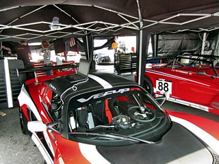 Über den Boxen im Paddock-Club hatte das Autohaus Haese die aktuellen Modelle aus dem Hause Lotus aufgereiht. Jan Jansen, versierter Mitarbeiter des Lotushändlers aus Wiesbaden und Clubmitglied des LCD, stand dort den Besuchern mit Rat und Tat zur Verfügung. Ebenfalls auf dem Boxendach konnte man sich an verschiedenen Imbissständen mit Speisen und Getränken versorgen. An dieser Stelle sei ein gerüttelt Maß an Kritik erlaubt. Es gab dort zwar schön eingedeckte Tische, aber was die Qualität der feilgebotenen Speisen angeht, gibt es noch sehr viel Luft nach oben. Noch trostloser war es um das Catering auf dem Markenclubareal bestellt.