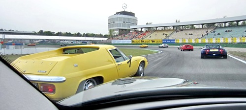 Und dann war da noch der Lotus-Weltrekordversuch. Unser Clubmitglied und Organisator des Lotus Historic-Register-Germany, Siegfied Herrmann, organisierte mit sehr viel Ehrgeiz und Herzblut dieses Vorhaben. Für das Gelingen des Weltrekordversuchs mussten mindestens 437 LOTUS Fahrzeuge eine Runde über den 4,574 km langen Grand Prix-Kurs des Hockenheimrings „rollen“. Dieses Ziel wurde leider verfehlt, aber eine Anzahl von 304 Fahrzeugen ist aller Ehren wert und wurde in dieser Größenordnung in Deutschland noch niemals zuvor erreicht. Unter den Startern befanden sich auch der Ex-F1-Fahrer Martin Donnelly und Adrienne Bende, eine Pilotin des Lotus Ladies Cup. Ein großes Dankeschön geht an alle Lotus-Besitzer, die keine Mühen und Kosten scheuten, um sich an diesem Happening zu beteiligen.