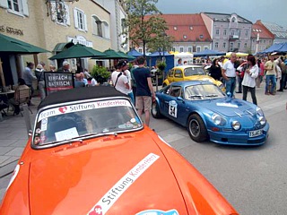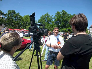 Donnerstag, 26. Mai: Thomas Jahn, Clubmitglied des LCD, Kurdirektor von Bad Aibling und Event-Organisator, überreichte uns bereits am Vorabend neben einem kleinen Willkommens-Geschenk die Durchfahrtsgenehmigungen zum Startbereich der Bavaria Historic. Heuer stand nämlich die Marke Lotus im Mittelpunkt und bekam exklusiv einen eigenen Bereich auf der großen Wiese vor Schloss Maxlrain zur Verfügung gestellt. Dort präsentierten wir bei herrlichstem Sonnenschein den zahlreichen Zuschauern unsere Fahrzeuge. Am frühen Nachmittag, kurz vor dem Start des Prologs der Rallye wurde der wunderschöne Lotus Esprit Essex unseres Ehrenvorsitzenden, Hugo Schneider, der breiten Öffentlichkeit vorgestellt. Majestätisch rollte er auf die Startrampe. Wolfgang Leikermoser, bekannter Moderator des Radiosenders Antenne Bayern, führte das Interview und Hugo beantwortete alle Fragen gewohnt professionell. Das örtliche Fernsehen, rtv führte ebenfalls einige Interviews mit Clubmitgliedern und sendete einen vierminütigen Bericht, welcher sich ausschließlich mit der Marke Lotus und dem Lotus-Club-Deutschland befasste. Das hat man auch nicht alle Tage!