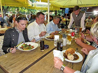 Nachdem wir uns im Hotel etwas erholen konnten, brachte uns ein Shuttle in den urigen Biergarten des Braustüberl Maxlrain. Bei Schweinshaxen mit Knödel und anderen bayerischen Köstlichkeiten sammelten wir neue Kräfte. Später brachte uns der Shuttle wieder zurück ins Hotel. In der Campus Bar, direkt am Pool, ließen wir den Tag bei einigen Kaltschalen ausklingen.