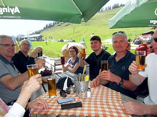 Die Anreise: Getreu dem Motto - „der Weg ist das Ziel“ wollten wir bereits während der Anreise etwas Spaß haben und wählten nicht die schnellste, sondern eine schöne Reiseroute. Es war eine gesunde Mischung aus einigen Autobahn-Kilometern und schönen Landstraßen. Natürlich legten wir eine ausgiebige Mittagspause ein. Auf der Terrasse des Gasthauses Wiesenbräu, mit Blick auf den Buxheimer Weiher, nahmen wir eine leichte Mahlzeit zu uns. Buxheim liegt übrigens ganz in der Nähe von Memmingen. Wir hatten also bereits mehr, als die Hälfte der Anreise geschafft. Unser nächstes Zwischenziel war Bad Tölz. Dort trafen wir die norddeutsche Fraktion, die Schulzens, im Eiscafe Anja’s sweet kitchen. Am späten Nachmittag kamen wir in Bad Aibling an. Nachdem wir unsere wirklich großzügig bemessenen Zimmer des B&O Parkhotels bezogen hatten, trafen wir auf der Hotel-Terrasse weitere Event-Teilnehmer und hatten noch einen angenehmen Abend.