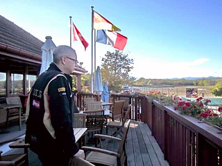 Helm auf und los geht’s, erstes Training, gemütliche Einführungsrunde, die Strecke ist toll, keine Unebenheiten, breit und bis auf eine Stelle immer gut einsehbar. Große Schilder markieren 100m, 50m und 10m zur nächsten Kurve, das hilft beim Merken der Bremspunkte. Dann ging‘s richtig los. Ca. 25 Lotus-Fahrzeuge, hauptsächlich Exige, aber auch ein paar Monopostos, Elise und ältere Modelle. Ich wurde in meinem Leben noch nie so viel überholt! Es lag nicht am Auto. Auf der langen Gerade konnte ich durchaus gut mit anderen Elise mithalten. Ich hatte auch schnell gelernt, dass man auch bei 180 nicht in den 6 Gang schaltet und eigentlich nur auf den Drehzahlmesser schaut und nie auf den Tacho. Den Motor immer möglichst im oberen Drehzahlbereich halten. Schalten genau dann, wenn die erste rote Lampe angeht, das bringt gleich in paar km/h mehr auf der Geraden. In den Kurven fehlte mir die Erfahrung, zu früh gebremst und zu langsam in die Kurven. Offensichtlich manchen die andren das öfter.