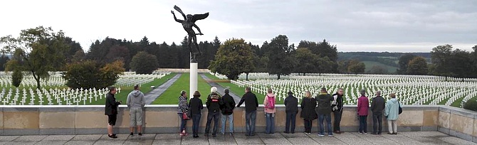 Die kurze Rückfahrt führt die Interessierten unter uns dann noch über einen amerikanischen Soldatenfriedhof, den die Organisation empfahl. Zurück im Hotel kurz relaxt und "frisch gemacht", Näschen gepudert und zur Überbrückung bis zum Apero an die Bar begeben, wo die belgischen Bierköstlichkeiten darauf warten probiert zu werden. Das folgende Menu im festlichen Rahmen überzeugt eindrücklich von der Leistungsfähigkeit der Küche in diesem großen Haus. Mit purem Essen der gereichten Speisen zollt man dieser nicht den angebrachten Respekt. Genießen ist hier absolut angebracht. Die Speiseauswahl ist vorzüglich, auch wenn manch einer keinen Hehl aus seiner Missbilligung macht und als Ausgleich im späteren Verlauf des Abends zur ominösen Kaltschale greift.