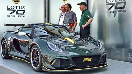 Vor dem Glaspavillon, in unmittelbarer Nähe zum Stand von BF-Motorsport, wartete bereits am Samstagnachmittag ein ganz besonderes Schmankerl auf alle Lotus-Fans. Clive Chapman präsentierte stolz den brandneuen Lotus Exige Cup 430 Type 25. Weitere offizielle Vertreter der Marke, wie Georg Prisner und Wolfgang Momberger waren ebenfalls zugegen. Lotus-Nürnberg und Komo-Tec zeigten auf dem Boxendach alle aktuellen Modelle der Lotus-Palette.