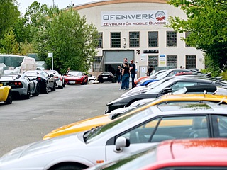 Sebastian Schwertner ist eingefleischter Lotus-Fan, fährt privat einen R340 und hat sein Hobby zum Beruf gemacht. Er ist die „gute Seele“ von Lotus-Nürnberg und hat sich allerhand Mühe gemacht, um uns ein angenehmes Wochenende zu bereiten. Die angereisten Gäste wurden mit Kaltgetränken, Kaffee und süßen Stückchen empfangen und bekamen neben einem Roadbook auch ein Lanejard mit Namensschildchen ausgehändigt, damit sie als offizielle Gäste erkennbar waren. Natürlich konnten alle aktuellen Lotus-Modelle in Augenschein genommen werden und es gab beim Probesitzen reichlich Stoff für Benzingespräche. Überhaupt hat das gesamte Areal des Ofenwerks seinen ganz eigenen Charm. Kein Wunder also, dass die Zeit wieder viel zu schnell verging und wir uns losreißen mussten, um den Start zur Ausfahrt nicht zu verpassen.
