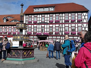 Freitag, 28. September: Bei leichtem Regen und herbstlichen Temperaturen nahmen wir nach dem reichhaltigen Frühstück die ersten Kilometer nach Drei Annen Hohne in Angriff. Am dortigen Bahnhof der Harzer Schmalspurbahn angelangt, kamen die Eisenbahn-Romantiker voll und ganz auf ihre Kosten. Mit einem historischen Dieseltriebwagen setzten wir unsere Reise nach Wernigerode fort.