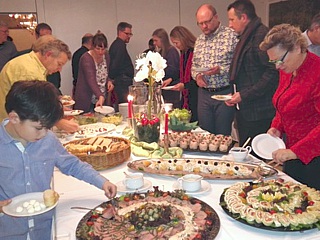 Das Festtags-Buffet ließ keine Wünsche offen und es war nicht leicht, der Satt-Meldung seines Körpers zu gehorchen. Nachdem alle gestärkt waren, führte Hugo uns weiter durchs Programm, wobei die Anwesenden – anders als bisher – weniger eingebunden waren. Oder mit anderen Worten: Die Gäste folgten dem kurzweiligen Programm, ohne selbst aktiv werden zu müssen. Und das wurde von der Mehrheit äußerst wohlwollend zur Kenntnis genommen.