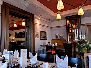Gegen 20:00 Uhr trafen wir uns im behaglich eingerichteten Restaurant zum Abendessen. Die eigens für den LCD gedruckte Menü-Karte rundete den ersten guten Eindruck ab. Zu schade, dass gerade bei diesem Event unsere Zigarren-Raucher mit Abwesenheit glänzten. Das Haus verfügt nämlich über eine gut sortierte und urig eingerichtete Zigarren-Lounge.