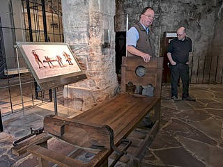 Am folgenden Morgen wurden die Boliden aus der Garage befreit, denn die Ausfahrt nach Schloss Waldeck stand auf dem Plan. Der burgähnliche Komplex befindet sich auf einer Anhöhe, direkt über dem Edersee. Den herrlichen Blick hinab auf den See ließen wir uns nicht entgehen, bevor eine Schlossführung der besonderen Art begann. Genau genommen besichtigten wir die Folterkammer. Während der Führung wurde uns die Funktion der einzelnen Foltergeräte nähergebracht, welche im Mittelalter Verwendung fanden. Zum Schluss besichtigten wir den schlosseigenen Tiefbrunnen.