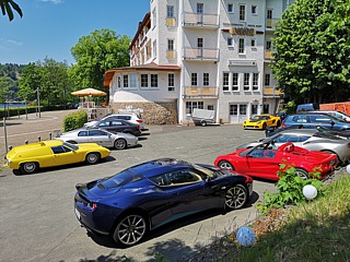 Der 6. Juni war unser Anreisetag. Es war ein Donnerstag, denn wir durften uns auf ein 4-Tages-Event freuen. Das Hotel liegt im Zentrum des schmucken Städtchens, direkt beim Rathaus mit seinen 10 Türmen – kein Schreibfehler. Das im Fachwerkstil erbaute Rathaus schmückt sich tatsächlich mit 10 Türmen. Am frühen Nachmittag ließen sich die ersten Gäste auf der Terrasse vor dem Hotel mit koffeinhaltigen Getränken und dazu passenden Süßspeisen verwöhnen, nachdem die Fahrzeuge in der für uns reservierten Hotelgarage sicher verwahrt wurden.