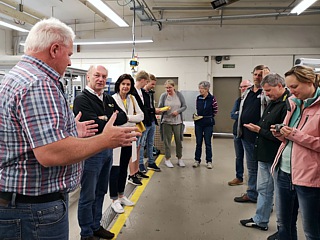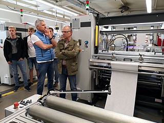 Tags darauf – es war schon wieder Samstag – führte uns das Roadbook zu „Roth Composite Machinery“. Dort zeigte uns Werner Kiehne was er so treibt, wenn er nicht gerade mit dem Lotus-Club unterwegs ist. Er konstruiert Maschinen. Am Beispiel einer Faltmaschine demonstrierte Werner, wie die Komponenten für Luftfilter produziert werden. Es war interessant zu sehen, wie viele Arbeitsschritte notwendig sind, bis das Endprodukt die Fertigungsanlagen verlässt. Wir waren alle erstaunt darüber, wieviel Know-how notwendig ist, um einen eigentlich simplen Artikel industriell zu fertigen.