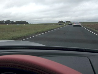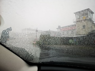 Der folgende Morgen – es war der Freitag – empfing uns mit Dauerregen. Da war bereits beim Frühstückstisch klar: Die Traktionskontrolle oder wahlweise das „Popometer“ werden während der Ausfahrt zur Wasserkuppe viel Arbeit haben. Per „Calimoto“ bahnten wir uns den Weg hinauf zur Wasserkuppe. Dort oben war es neblig, kalt, stürmisch und der Regen kam horizontal aus Nord-Ost. Kein guter Zeitpunkt um aus dem Auto auszusteigen.